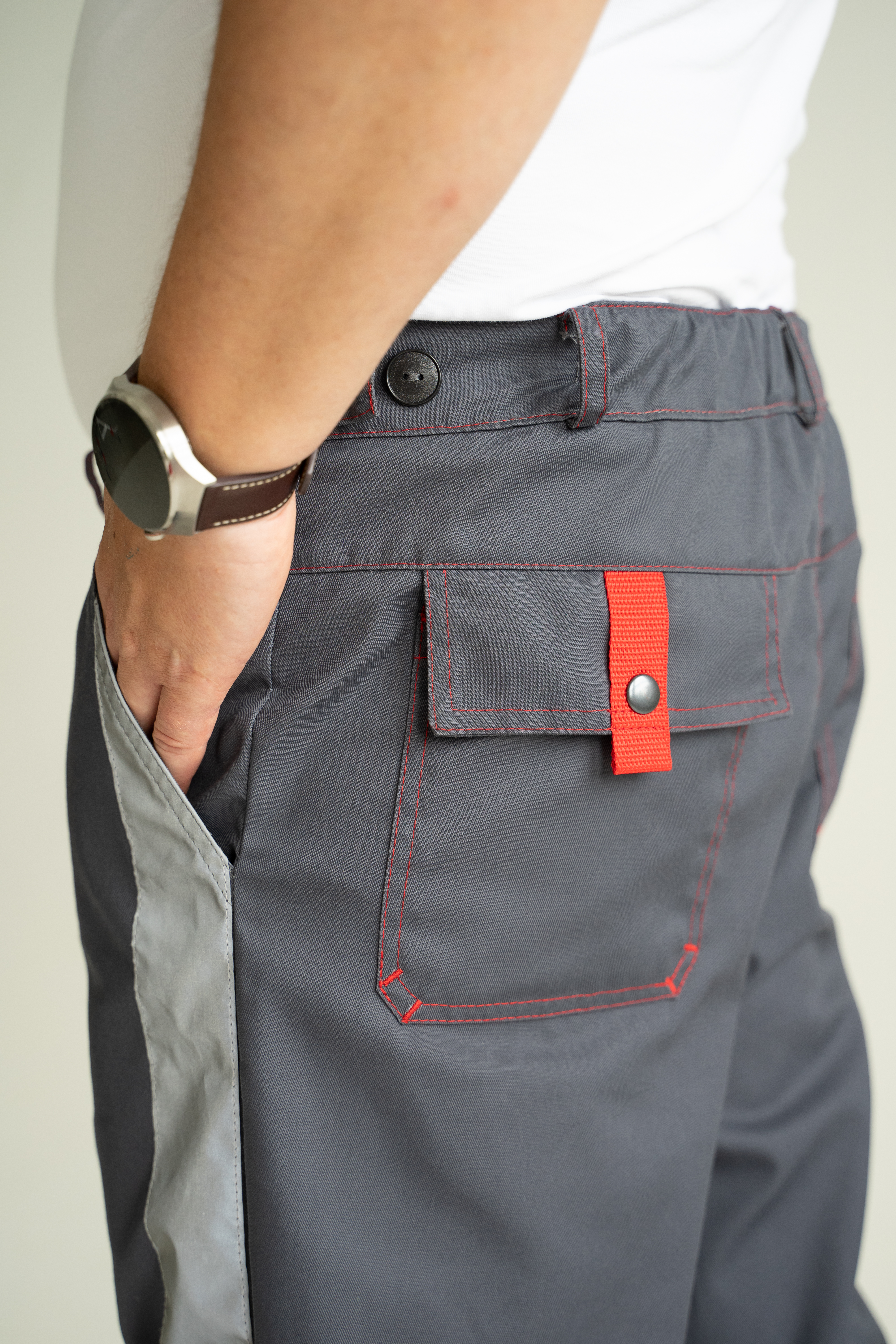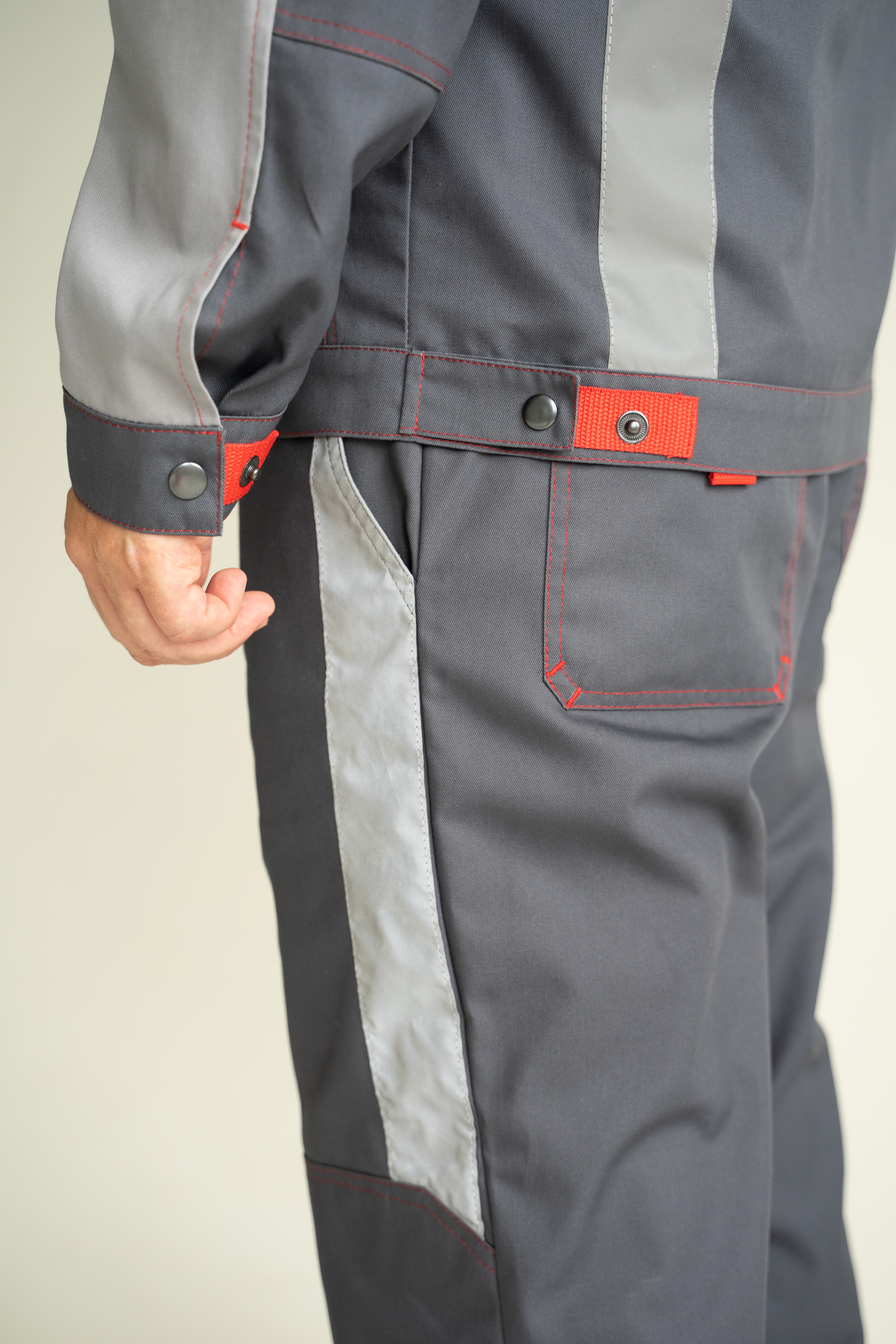 Карманы: нагрудный накладной с отделениями, боковые, накладные на задних половинках, петля для инструментов.